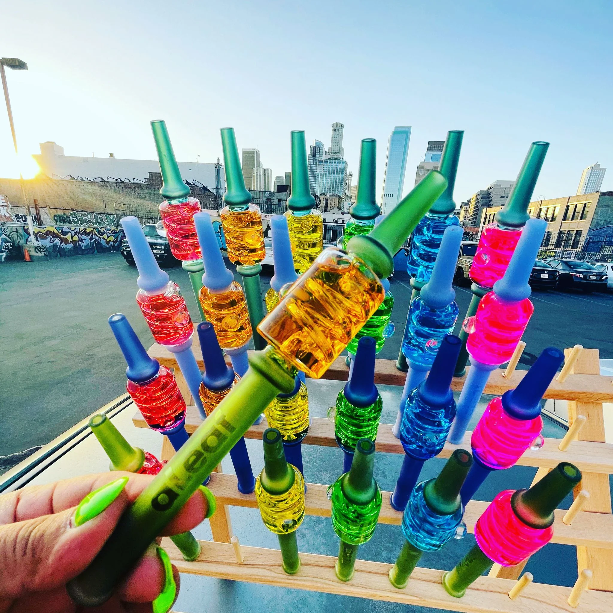 Our hottest straw yet is the best for cooling down your dab!! This coil perc Glycerin straw is the perfect portable straw. Just keep in your fridge till your ready! With 24 color combinations to choose from your sure to find the perfect match for you. Stay Lit my friends.