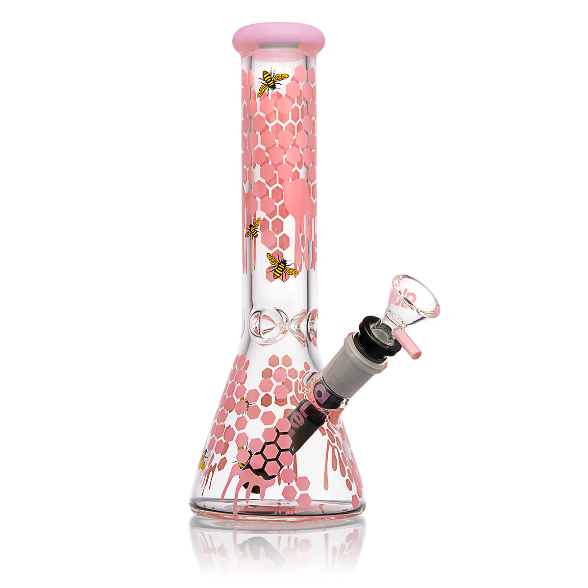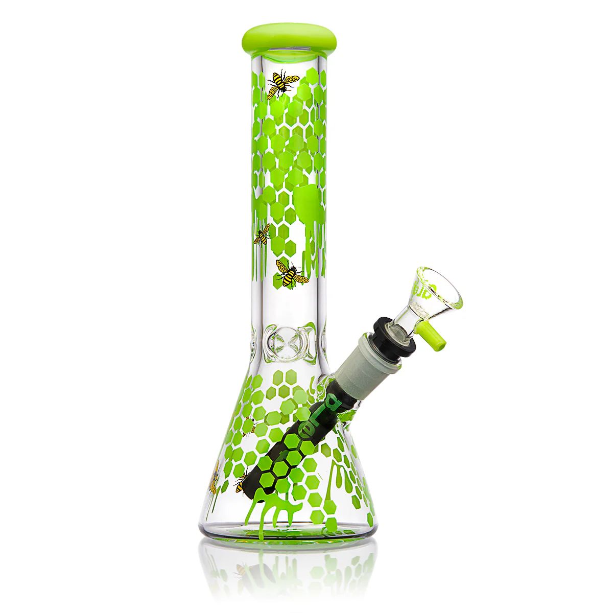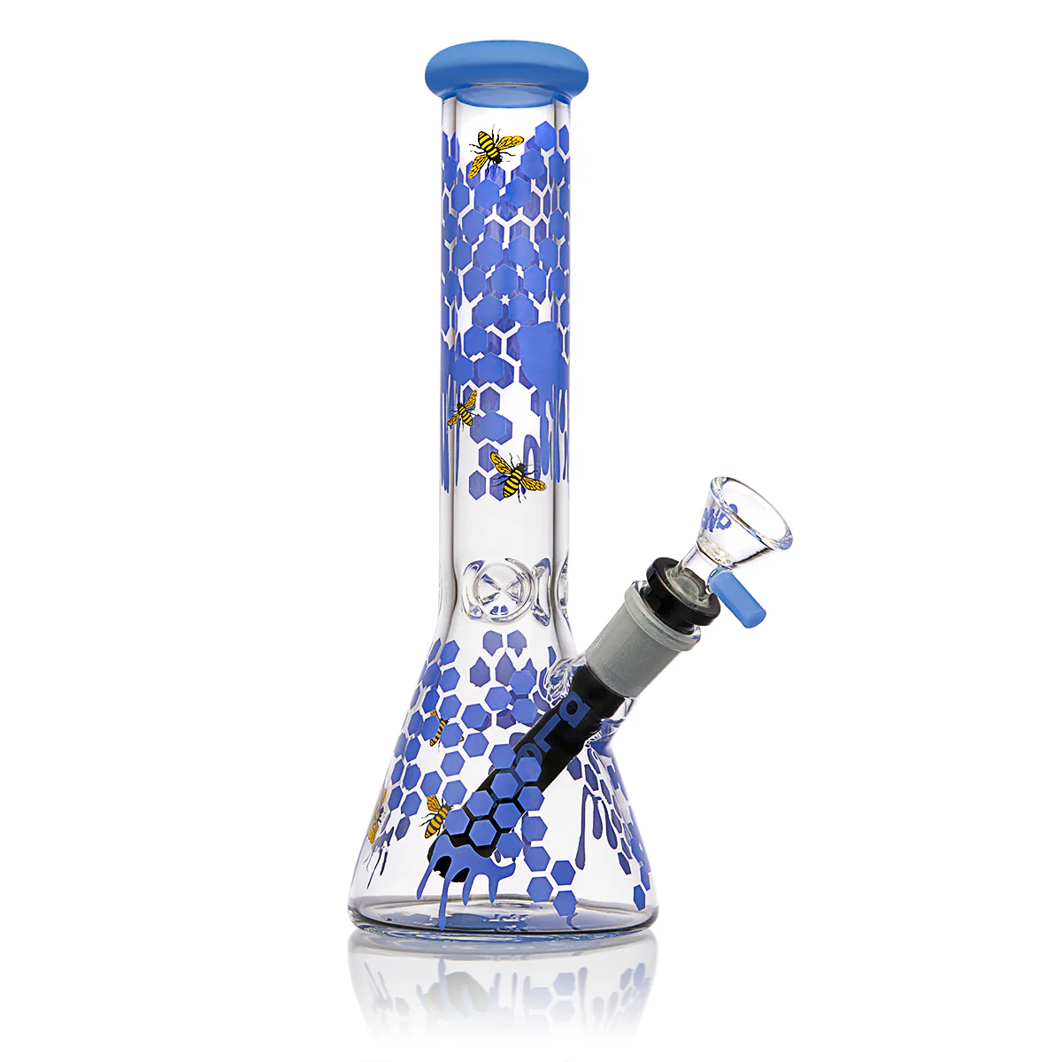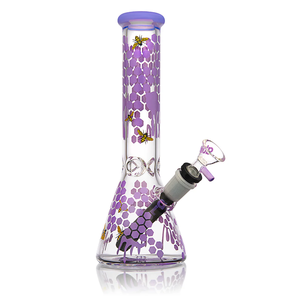 This uniquely designed 10" beaker honeycomb waterpipe comes with a multi-slit down stem and a color matching handle bowl.