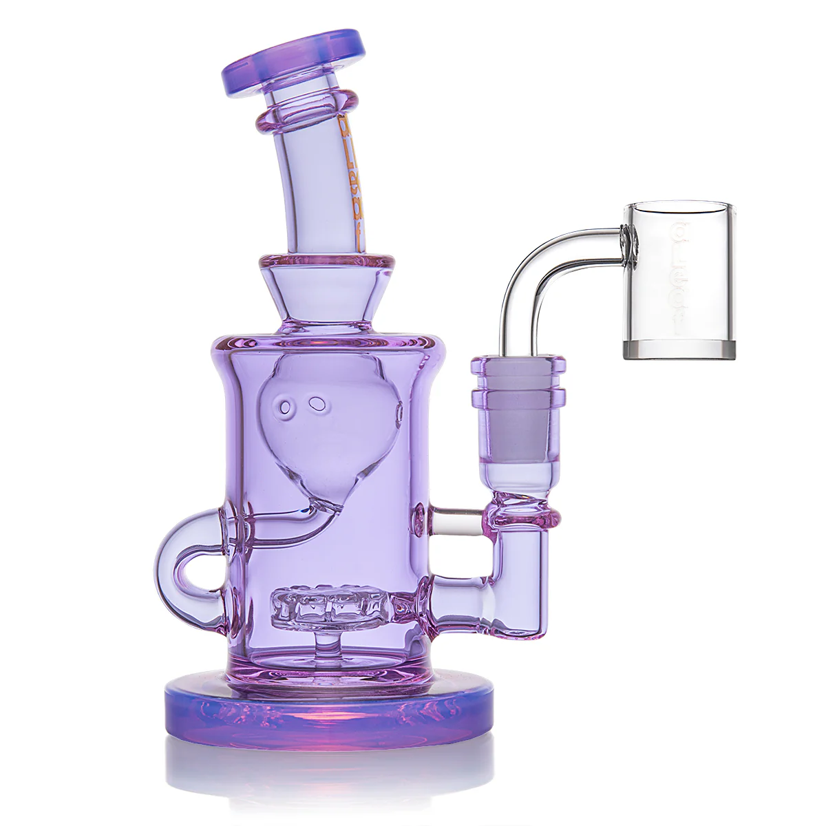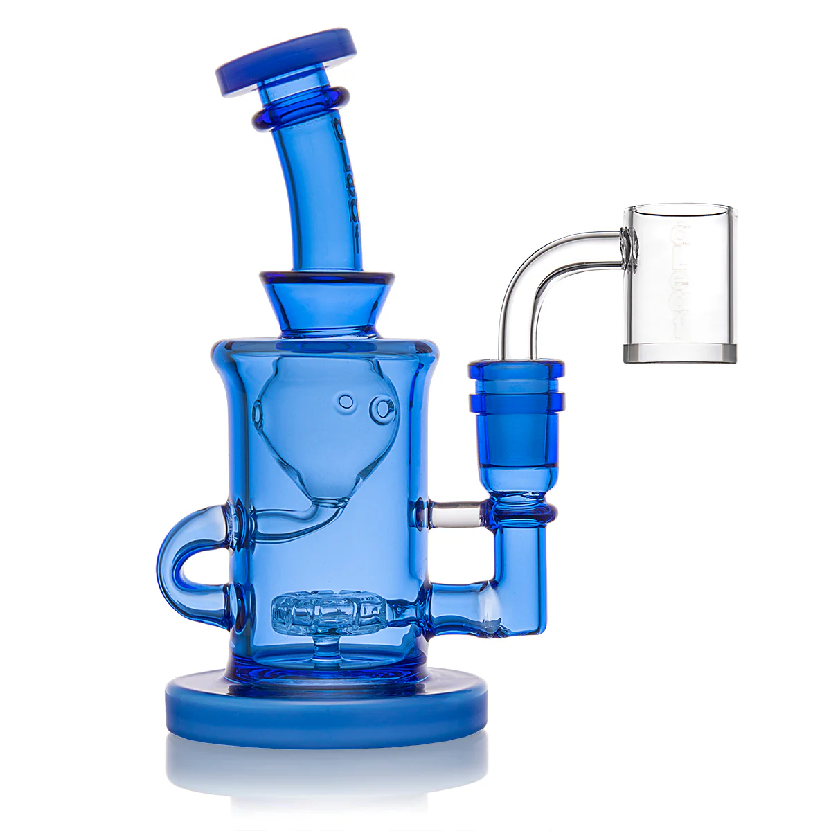 Standing around 6 inches tall, this recycler packs a punch in every hit. The UFO-style circ perc allows for maximum filtration while the recycling mechanism ensures your hit is cooled to perfection. Each piece is accented with a gold decal and comes with a 14mm enforced joint and 14mm male quartz banger.